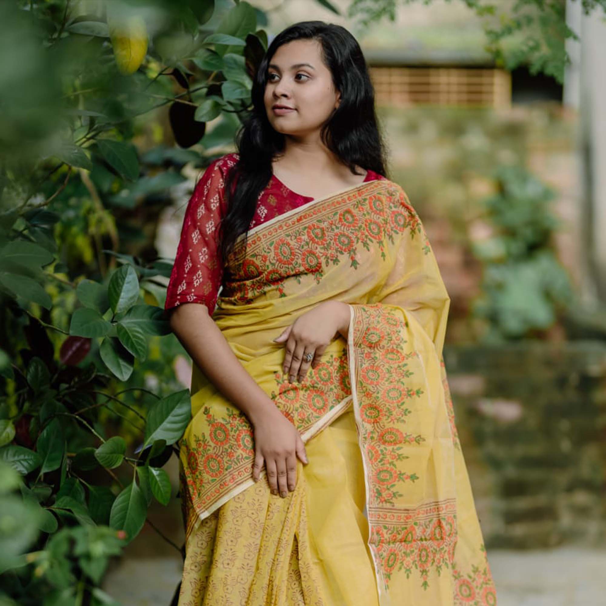 • ম্যাচিং ব্লাউজ ফ্রি: প্রতিটি শাড়ির সাথে ম্যাচিং ব্লাউজ ফ্রি দেওয়া হয়, যা ব্লক প্রিন্ট শাড়ির ক্ষেত্রে বিরল।