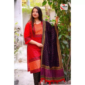 ব্ল্যাক রেড প্যাচওয়ার্ক শাড়ি