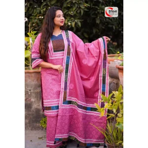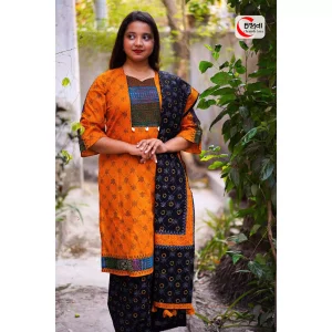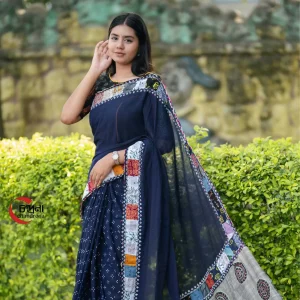 প্রিমিয়াম আকাশি প্যাচওয়ার্ক শাড়ি