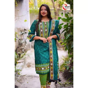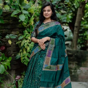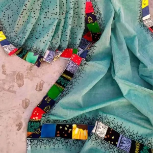 টিল কালার প্যাচওয়ার্ক শাড়ি