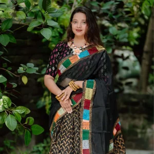 প্রিমিয়াম ব্ল্যাক প্যাচওয়ার্ক শাড়ি