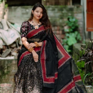 ব্ল্যাক লতা প্যাচওয়ার্ক শাড়ি