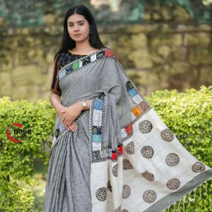 প্রিমিয়াম গ্রে প্যাচওয়ার্ক শাড়ি